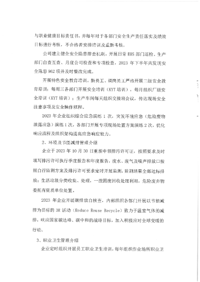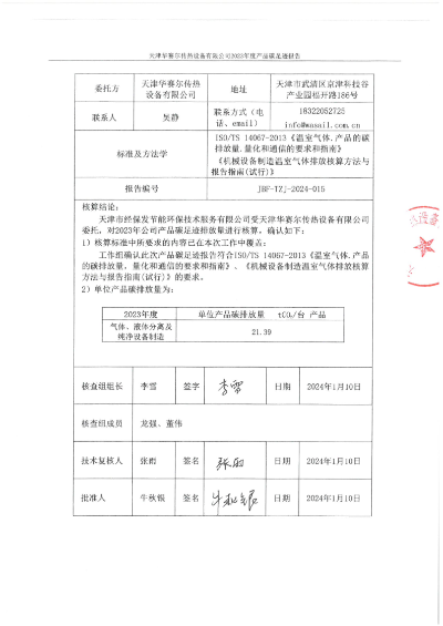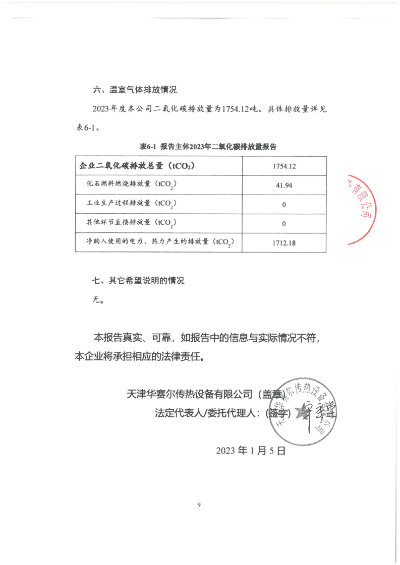 華賽爾公示《2023年溫室氣體排放報告》
